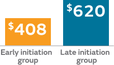- One-to-one matched cohorts were used to compare all-cause healthcare spending and disease-related health care spending between the early initiation and late initiation groups.